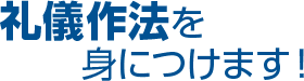 大きな声で返事、挨拶が出来るように指導し、大人になっても通用する礼儀作法を身につける。師範・先生など目上の人との接し方、言葉遣いは、日々の道場の中で生徒の年齢に応じてゆっくりですが、確実に指導します。